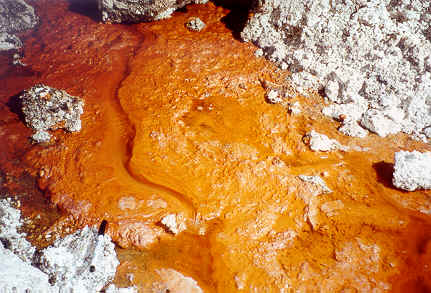 Left: Lower Spring oriface and white filamentous mats, May 1999.