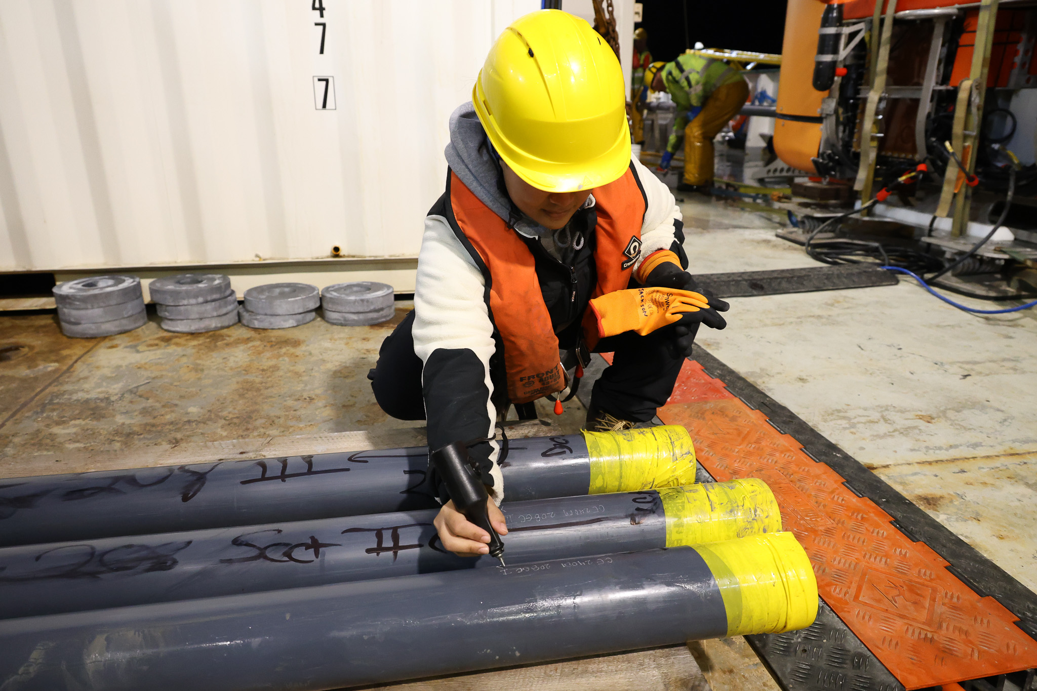 Mikayla Pascual, a graduate student at the Jackson School of Geosciences talks me through what happens after the cores are aboard.