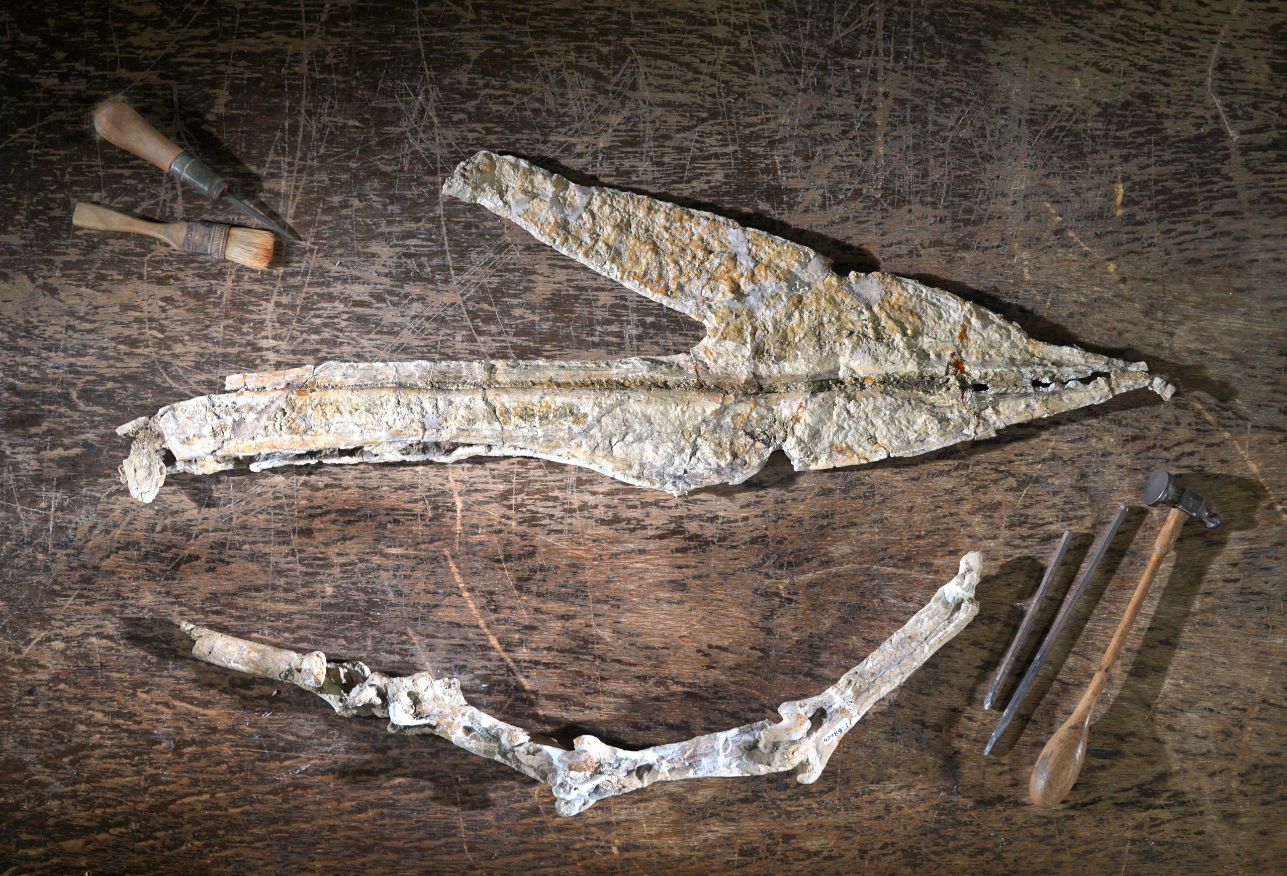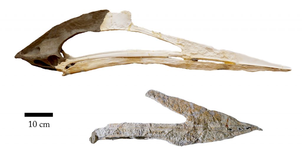 The two species can easily be differentiated by the long slender snout of Q. lawsoni and the short, blunted beak of W. brevirostris. Credit: Matthew Brown, The University of Texas at Austin / Jackson School of Geosciences