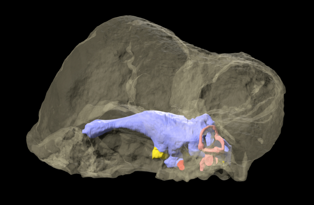 The holotype skull of Triopticus primus during preparation under the microscope. Photo credit- Matthew Brown