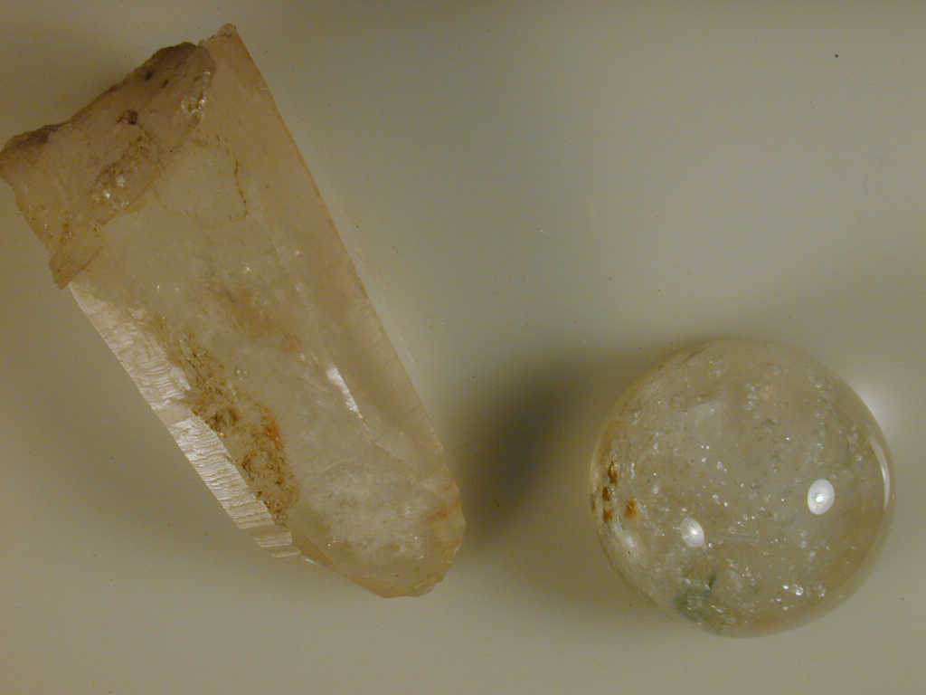 Notes: "Pyrophyllite inclusions in quartz - 2 pieces: subhedral crystal, cabachon"