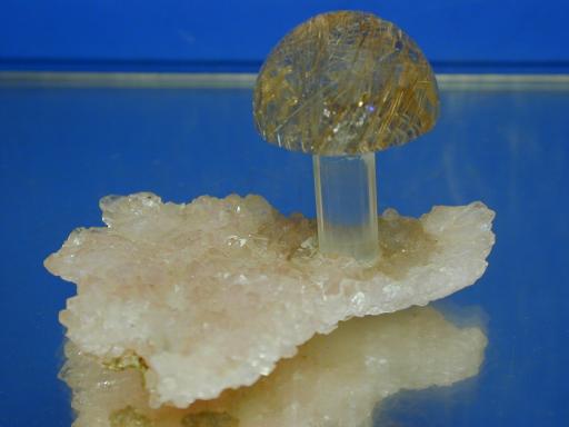 Notes: "mushroom cap: 29mm, hexagonal facets, with inclusions; stem: 10mm, on pink ms base"